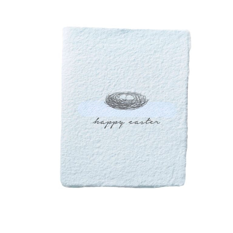 Babyblaue Grußkarte zu Ostern - Gravur auf recyceltem Papier. Lieferung mit dunkelgrauem Umschlag.